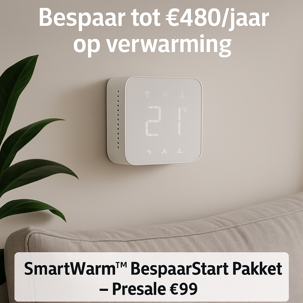 Na je aankoop ontvang je direct de SmartWarm™ BespaarPlanner (PDF) — een eenvoudig stappenplan om in de eerste maand meteen effect te zien, zonder installateur of extra kosten.